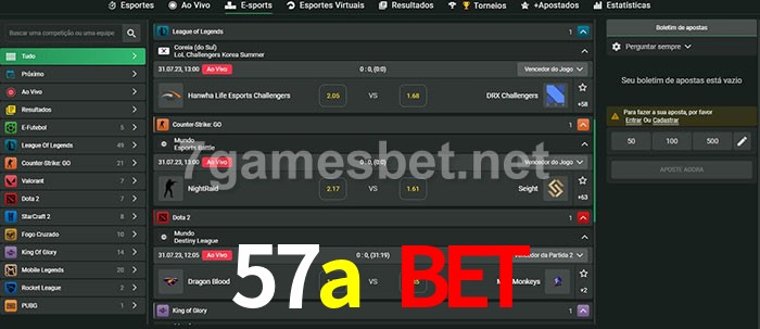 A aposta 57a bet oferece aos jogadores a experiência mais conveniente de apostas em eSports!